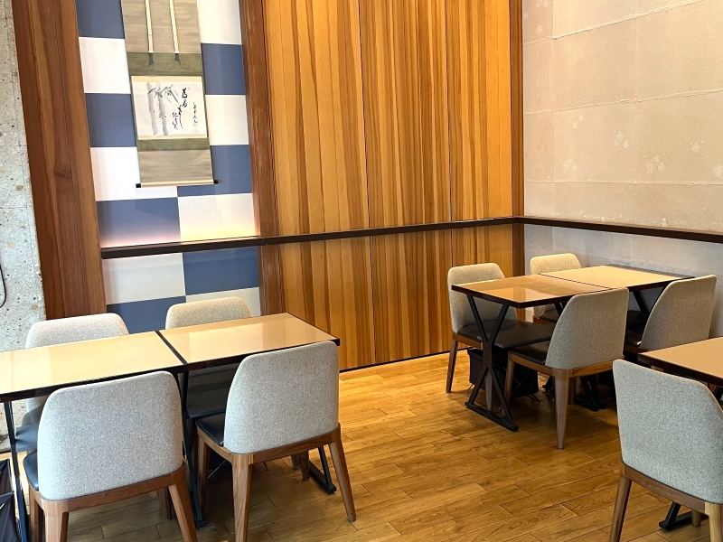 また、「鶴屋吉信 TOKYO MISE」には、「菓遊茶屋」のほかにもお休み処を備えた「茶房」も!モダンでありながら和の雰囲気が感じられる空間が広がります。こちらでは「鶴屋吉信」自慢の、あんみつやかき氷などの季節の甘味を楽しむことができます。取材時は、「柏餅とお抹茶」1320円などがありました。「菓遊茶屋」で大満足したら、次回は友達を誘って茶房を楽しむ…というのもアリですね!