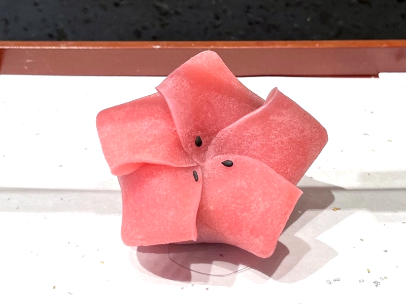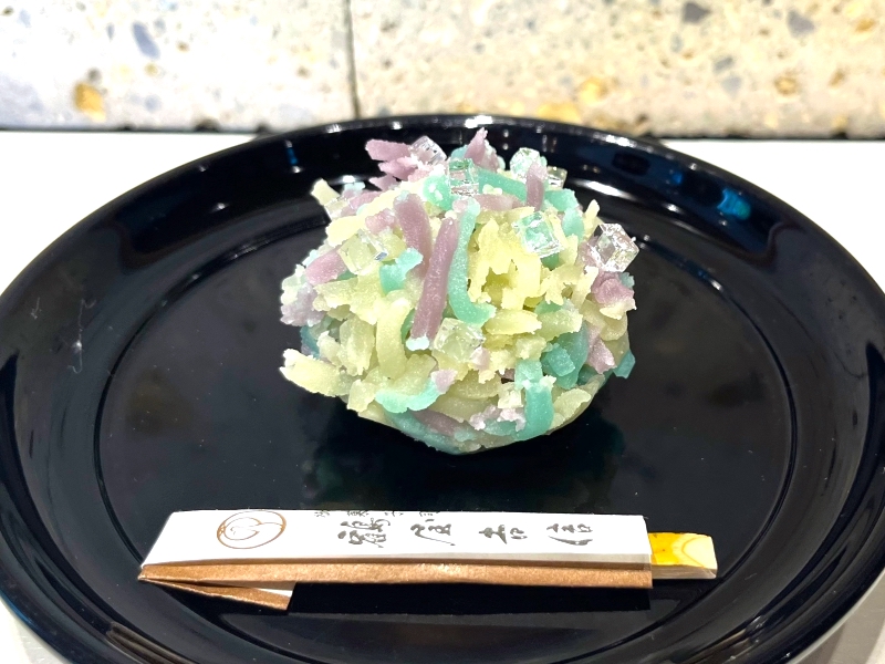 職人さんがお菓子を作っていた時間は2分弱。美しい所作にうっとりしていると、あっという間に完成です。