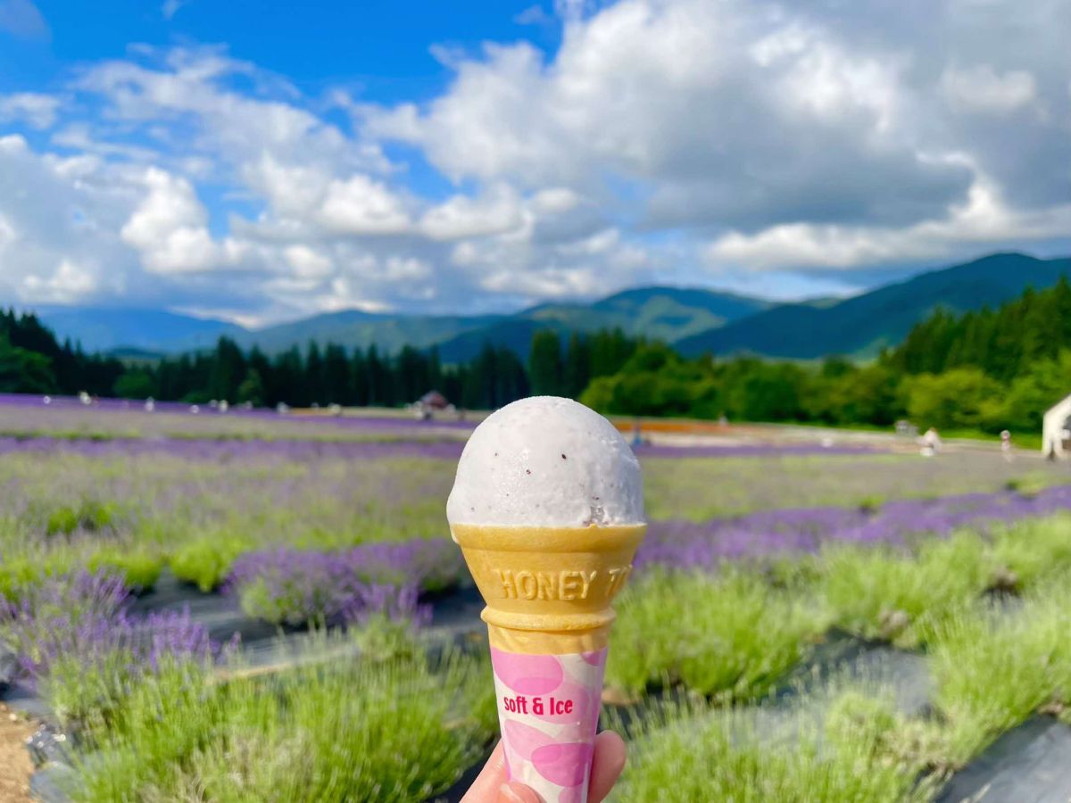 ラベンダーまつり期間中はラベンダーの摘み取り体験(容器に詰め放題で1回300円)や、「美郷雪華ルームフレグランス」や「美郷雪華のハンドクリーム」などのグッズの販売があります。また屋台やキッチンカーの出店では焼きそばやポテト、ババヘラアイスなどのメニューも楽しめます。ラベンダーまつり限定の「ラベンダーアイス」350円を片手に、咲き誇るラベンダーや雄大な景色を堪能しましょう。名物の「ニテコサイダー」300~400円はおみやげにもおすすめです。