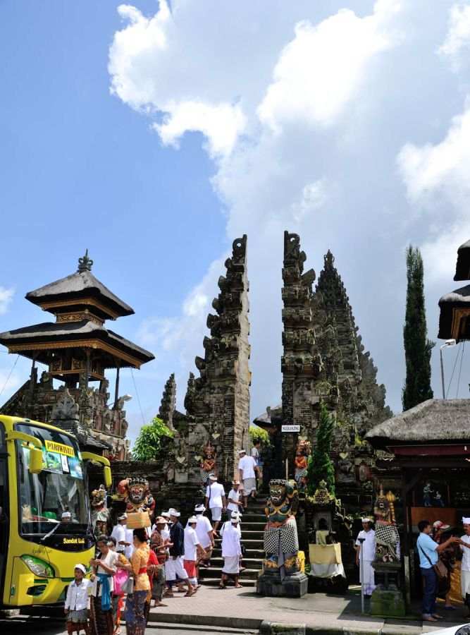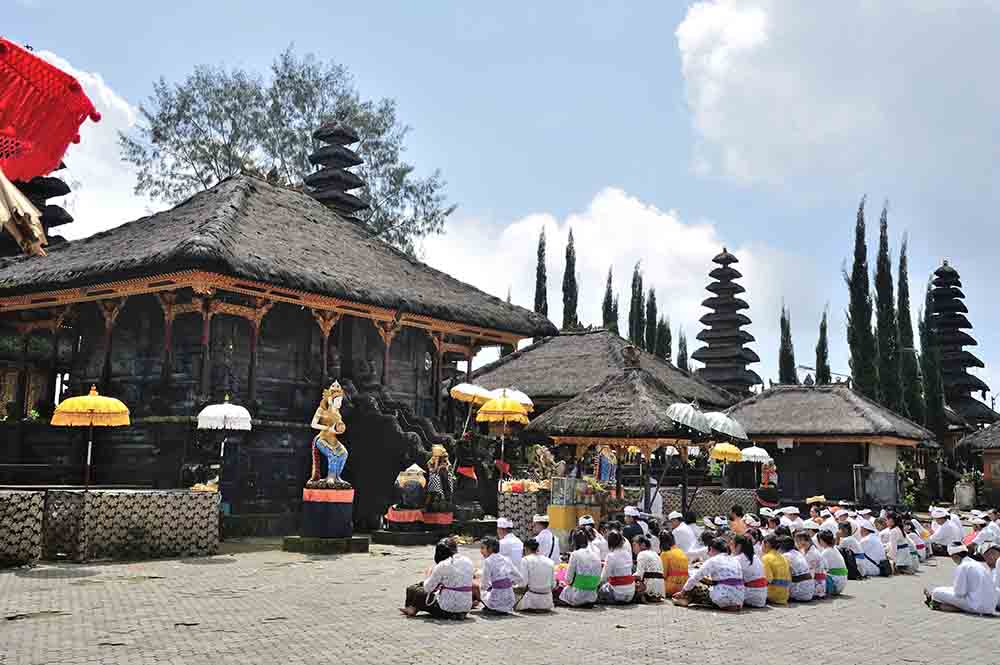 かつては湖の畔にありましたが、1917年と1926年の二度にわたって噴火したバトゥール山の被害を奇跡的に免れたことで、地元民の信仰が高まり、現在は山と湖を見渡す高台に移されて、大切に保護されています。2012年にはバトゥール湖とあわせて世界遺産にも登録されました。寺院から見下ろすバトゥール湖のコバルトブルーの景色は、爽やかな心地にしてくれます。