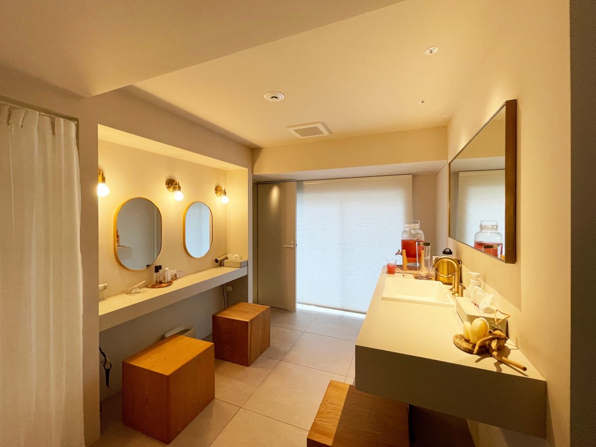 サウナ後はパウダールームへ。ライト付きミラーのドレッサーが並ぶ空間にワクワク。パウダールームでの身支度の時間は1枠(90分)の時間に含まれないので、時間を気にせずゆっくりと身支度できます。