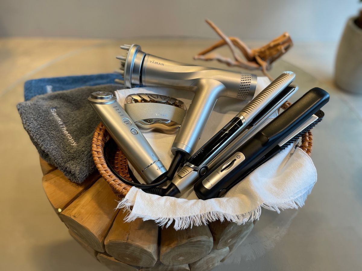 アメニティではエシカルな取り組みも。オーガニック&自然由来成分にこだわるスキンケアブランド「newscape(にゅーすけーぷ)」を採用し、脱プラスチックやゴミゼロ設計など、環境へのやさしさも追求したアイテムを提供しています。また、「YA-MAN」のドライヤーなどを完備しているという充実ぶり。手ぶらで訪れても質のいいアイテムでケアができるのがうれしいですね。