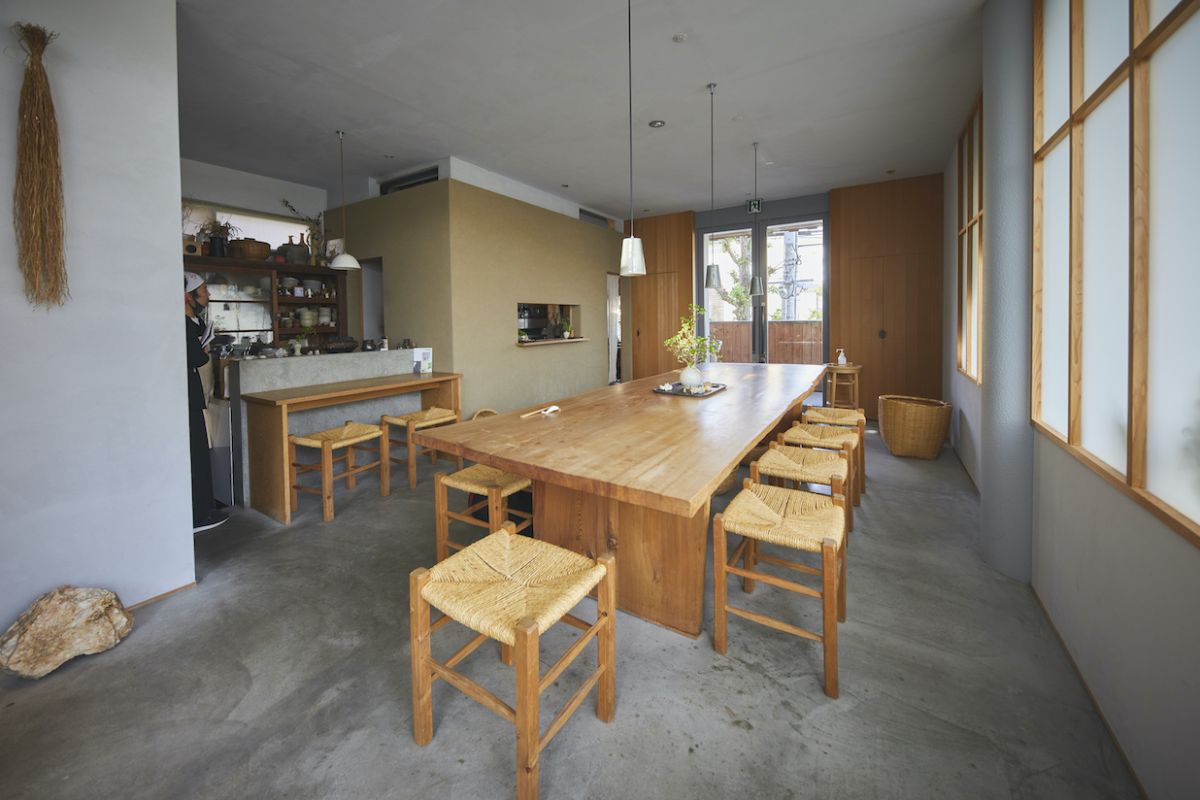 知る人ぞ知る隠れ家的な雰囲気が魅力的。しかし、入ってしまえば「一見さんお断り」なんてことはなく、店主の加藤祐基さんをはじめスタッフのみなさんが温かく迎えてくれます。内装には色味を抑えた床や壁に土や木、石などの天然素材を使い、さりげなく上品。