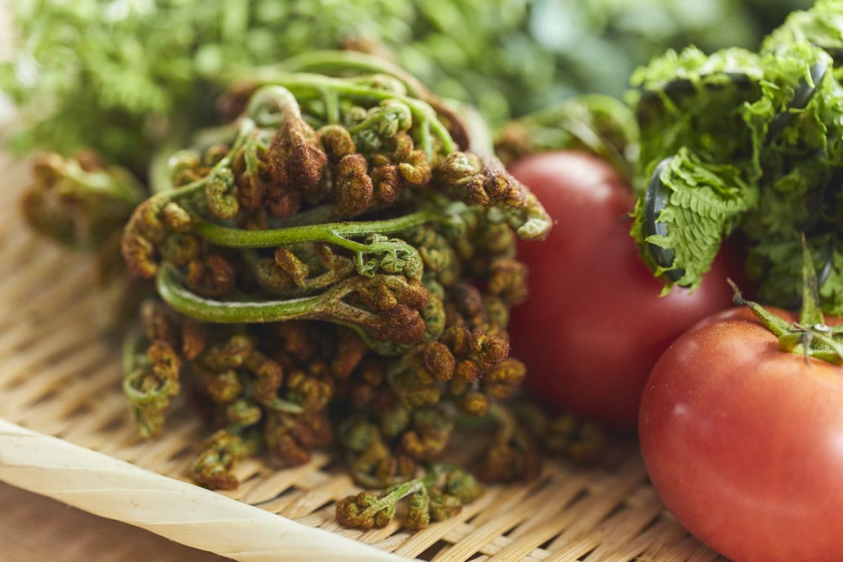 とくに春から夏にかけては野菜の楽しい季節。わらび、ぜんまい、こごみなど短い山菜の季節が終わったら、そらまめや絹さやなど豆が出てきて、夏野菜へ。加藤さんにとっても心浮き立つ季節です。