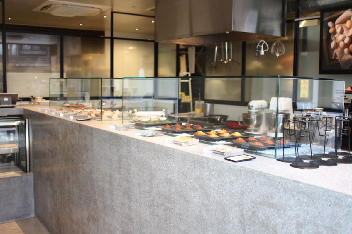 モノトーンのシックな外観同様、店内もスタイリッシュな雰囲気。ショーケースには、フィナンシェやタルトなどの焼き菓子が並んでいます。