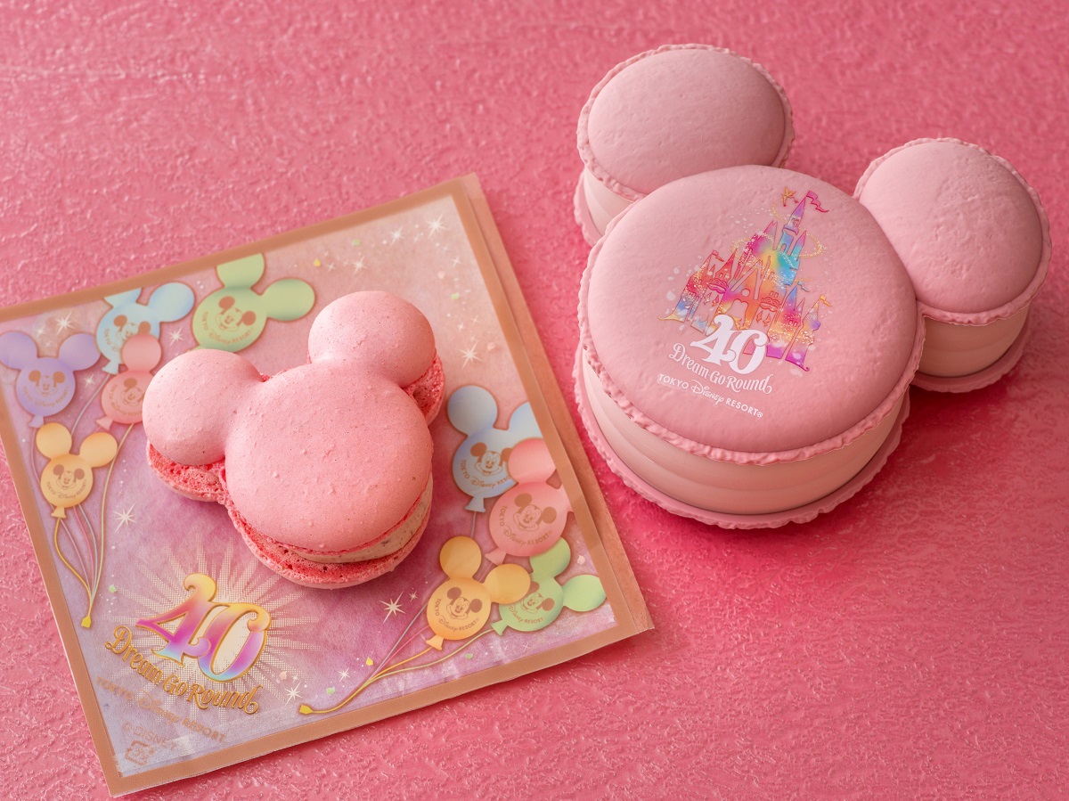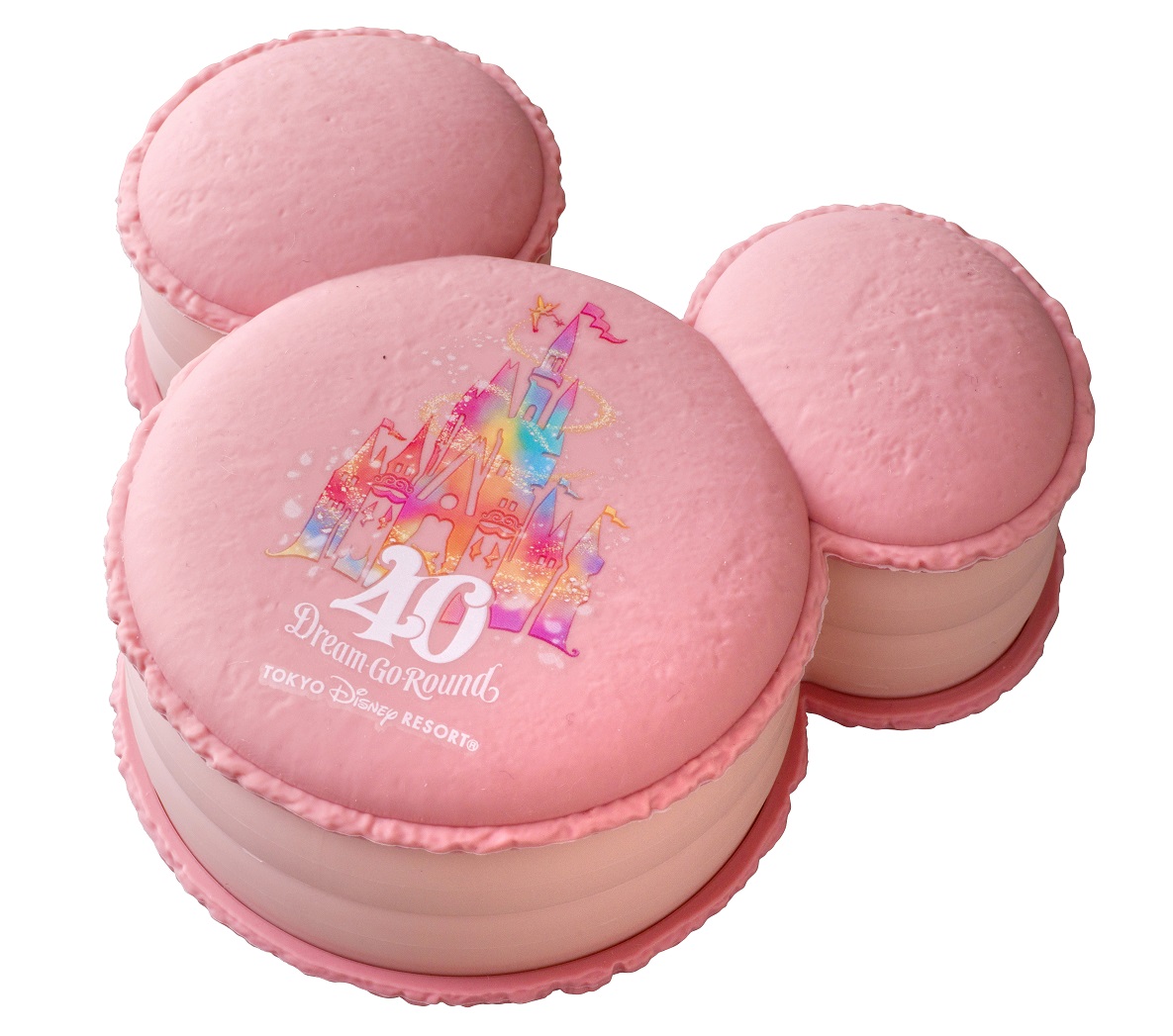 「ミッキーマカロン」に+1000円でセット購入できる40周年デザインのスーベニアケースは、「ミッキーマカロン」をイメージした思わず食べたくなるような形と色合いがかわいい♪ シリコーン素材でマカロンの質感を表現しているそう。クリームをイメージした部分は上下に開くことができて、小物を入れるケースとしても使えます。ぜひセットで購入してみて!