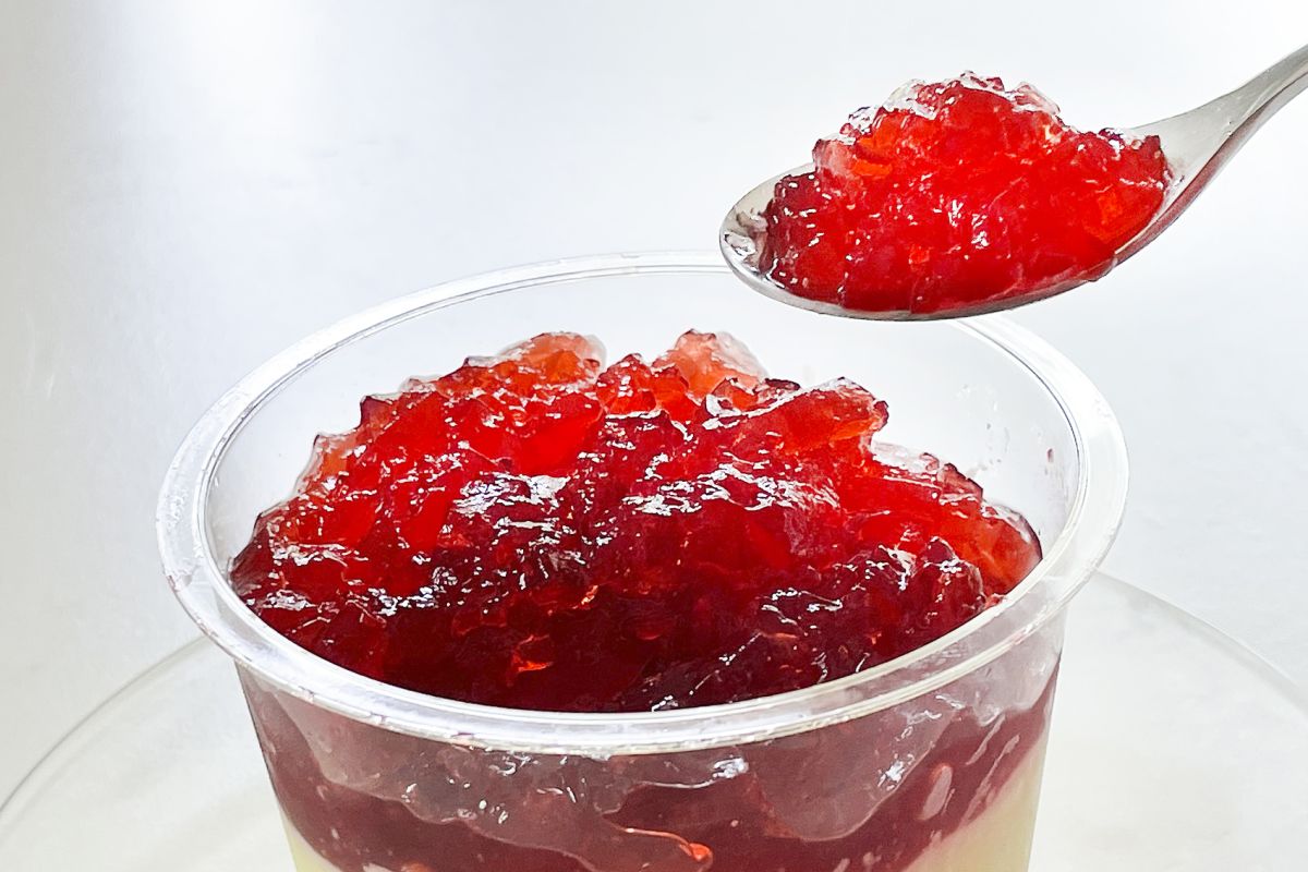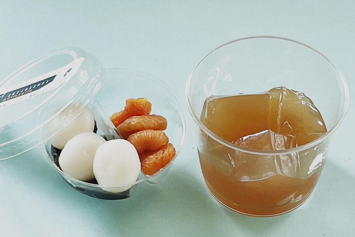 カップが2段重ねになっていて、下に梅ゼリー、上にトッピング具材が入っています。