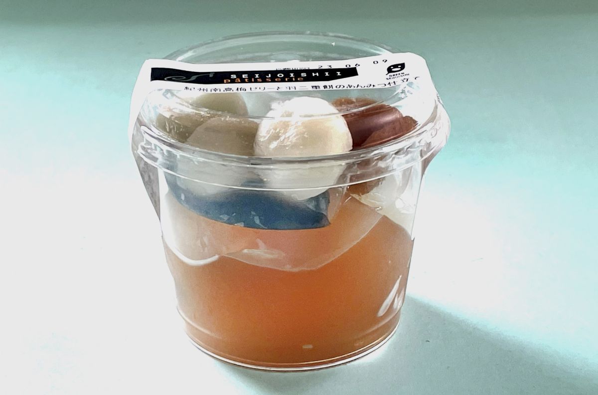 紀州南高梅ゼリーは、ややもっちりとしていて、わらび餅に似た食感。口の中でふるふると踊り、甘酸っぱい味わいが広がります。