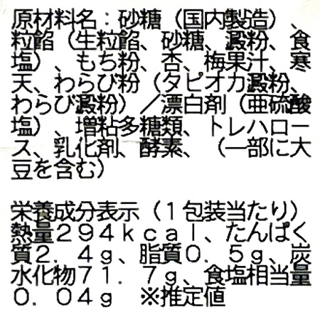 商品名は「紀州南高梅ゼリー」となっていますが、原材料名を見てみると、寒天やわらび粉が使われているようです。日本の伝統的な食品を使った、贅沢な一品ですね。