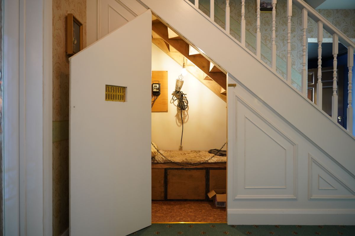 ダーズリー家は内部も見学可能。入口すぐの場所にあるのは、『ハリー・ポッターと賢者の石』でハリーが生活をしていた階段下の狭い物置。