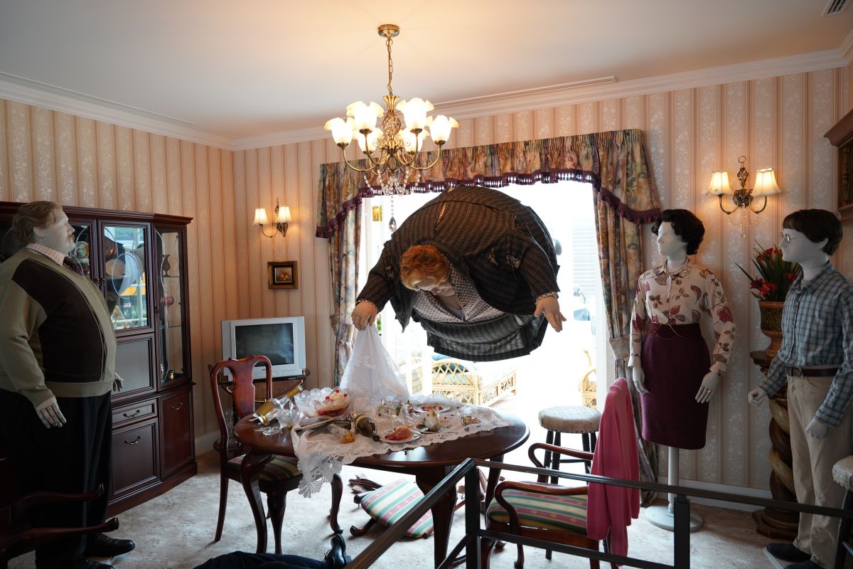 さらに奥にあるのは『ハリー・ポッターとアズカバンの囚人』でバーノン・ダーズリーの姉、マージおばさんがハリーの魔法によって風船のように膨らむシーンを再現したセット。パンパンに膨らみ、今にも窓の外から出て行ってしまいそうで迫力があります!