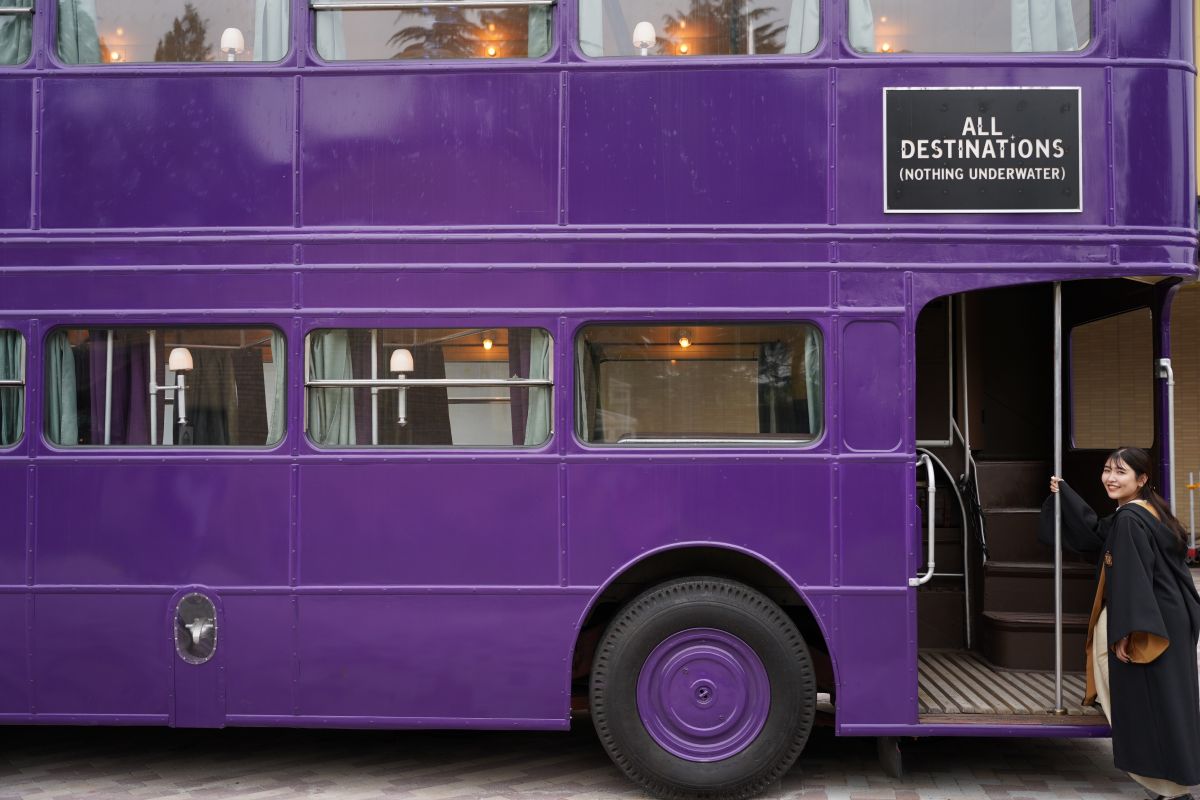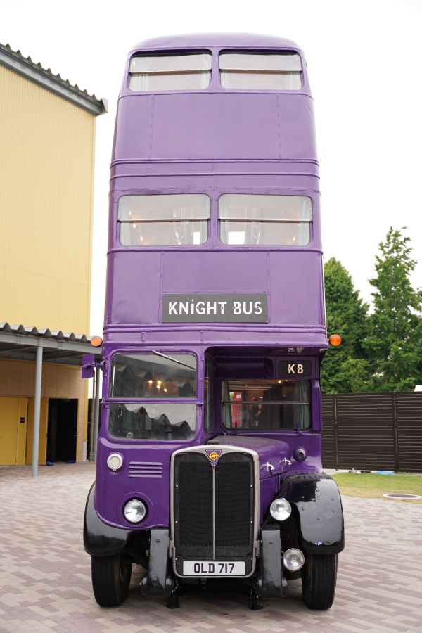 こちらは『ハリー・ポッターとアズカバンの囚人』で登場した「夜の騎士バス」。迷子の魔法使いを乗せてくれるバスで、どんな場所でも通り抜けることができ、普通のバスより速く移動できるのが特徴。迷子のハリーを乗せ、夜の町を激走するシーンが印象的でした。高さは約7mあり、ロンドンの2階建てバス3台分のパーツをつなぎ合わせて作られたのだそう。