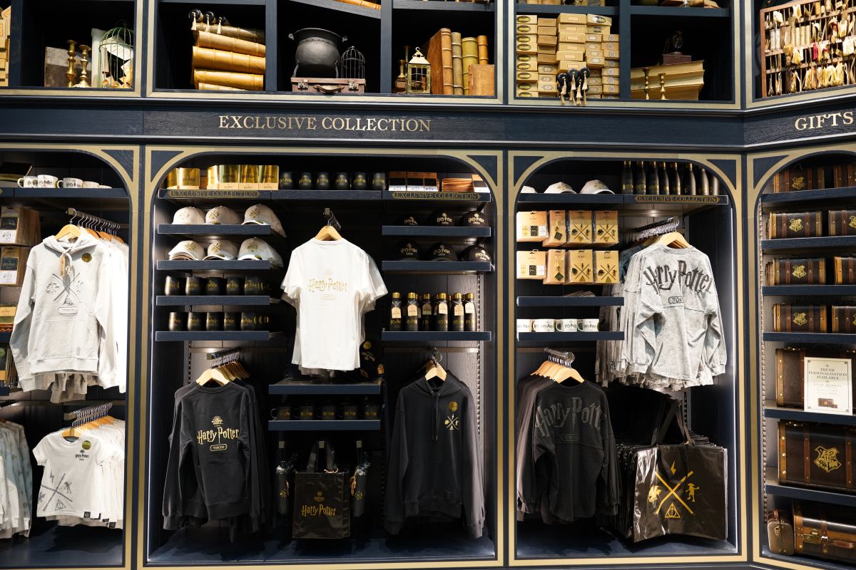 「ワーナー ブラザース スタジオツアー東京」を思う存分楽しんだあとは、ショップのチェックも忘れずに。グッズが販売されているのは、先述した「9と3/4番線ホグワーツ特急」にある「ザ・レイルウェイショップ」と写真の「スタジオツアー・ショップ」の2カ所。メインショップである「スタジオツアー・ショップ」は世界最大のハリー・ポッターショップで、7000点以上の特注品や、特別に調達した小道具で飾られた 14のテーマ別セクションからなります。