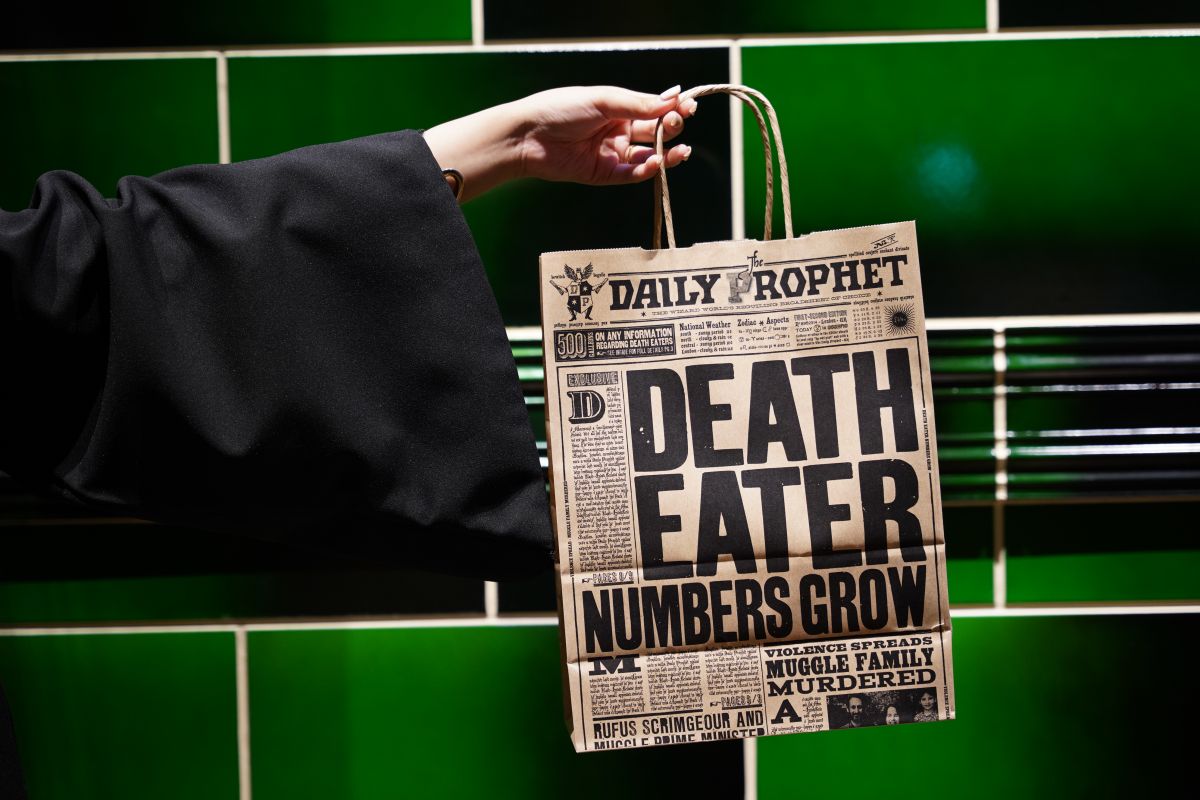 お目当てのものをゲットしお会計をすませると、商品を入れてくれるショッパーは「日刊預言者新聞」風のデザイン。最後の最後までしっかり『ハリー・ポッター』の世界観を感じさせてくれます。