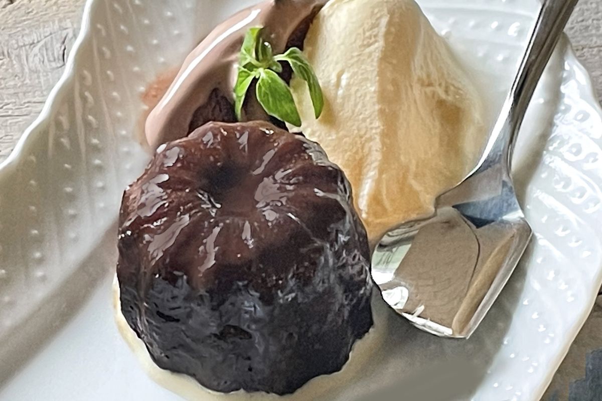アイスクリームを添えると、アイスクリームはみるみる溶けますが、温かなカヌレと、冷たいアイスクリームのコンビネーションが最高!