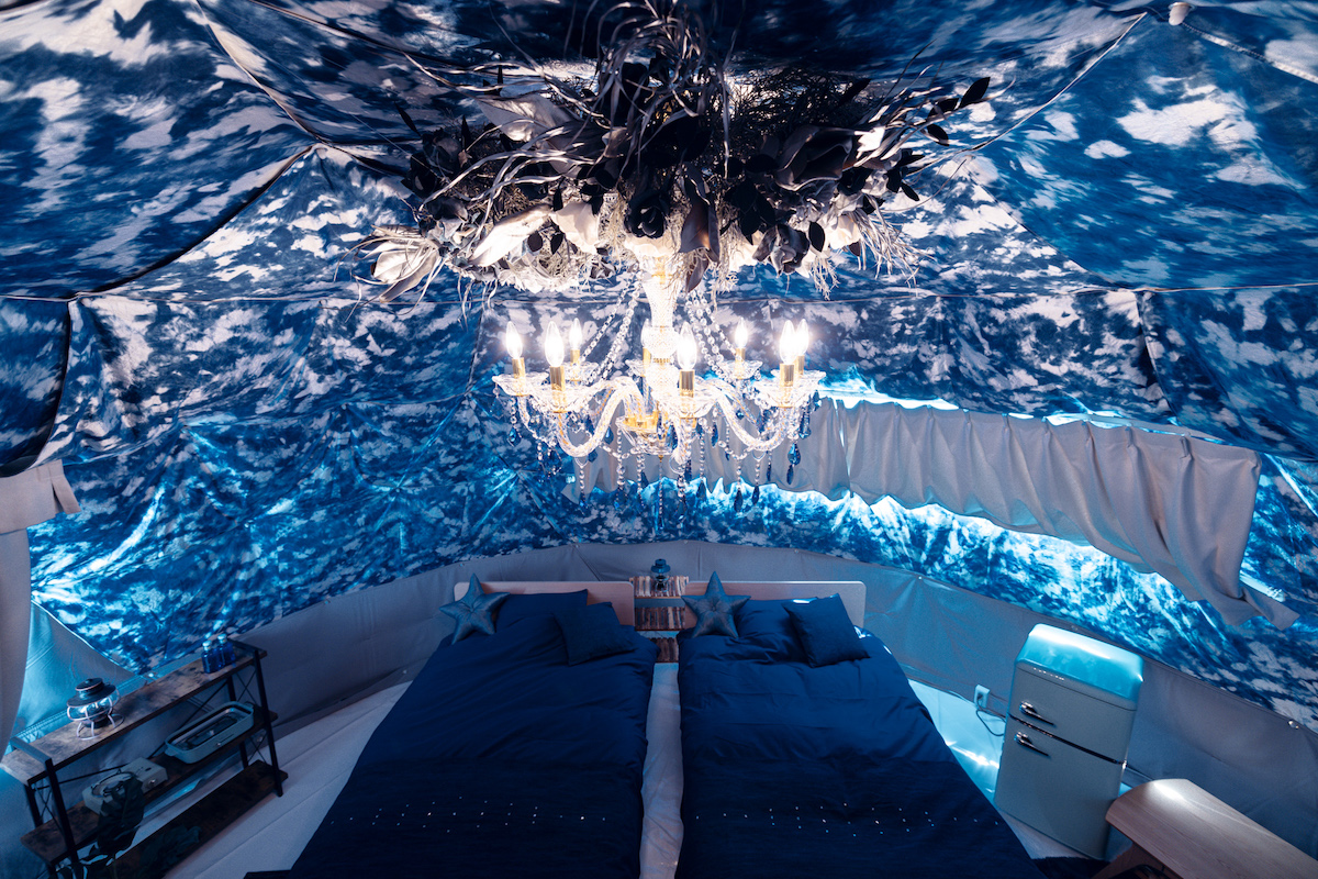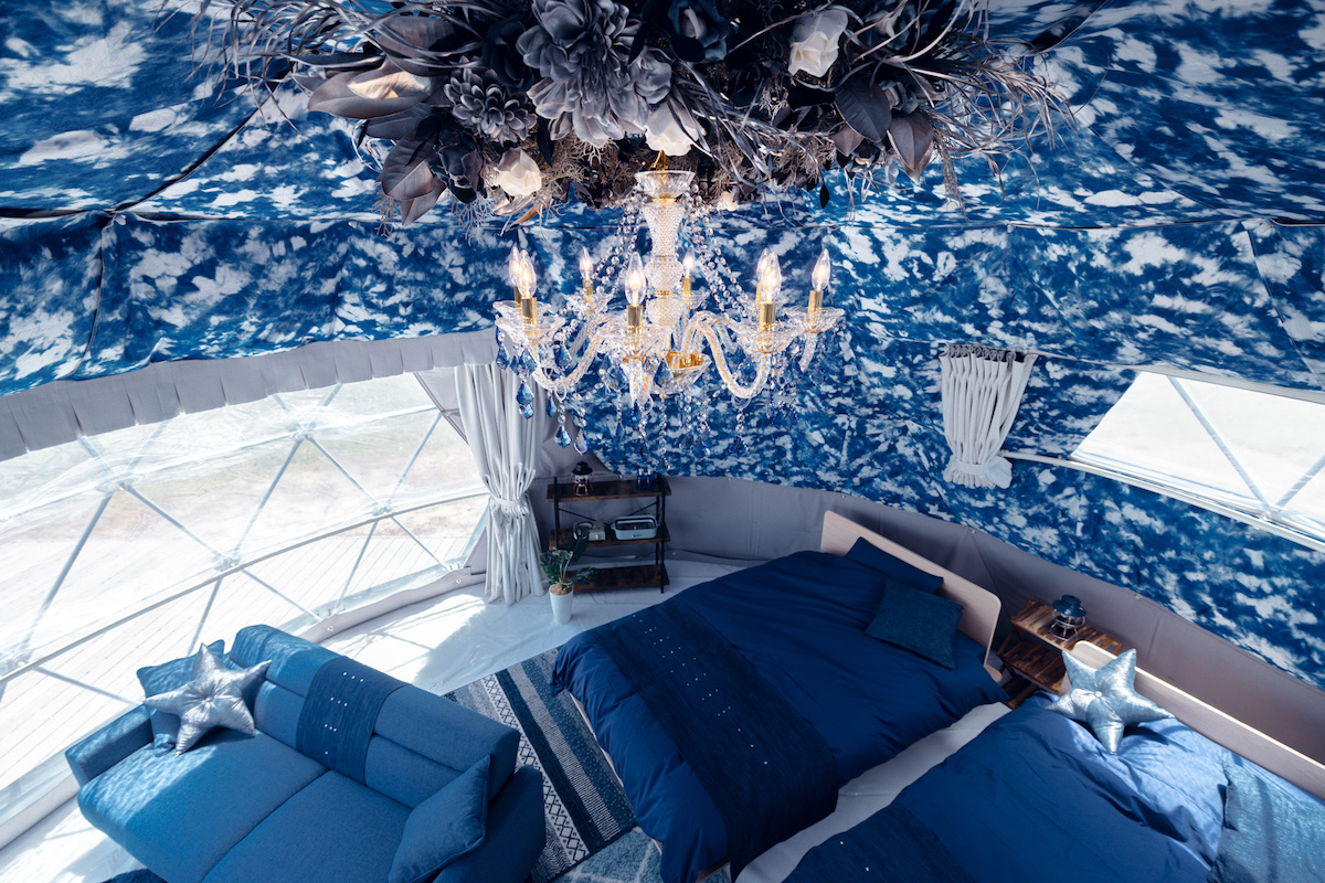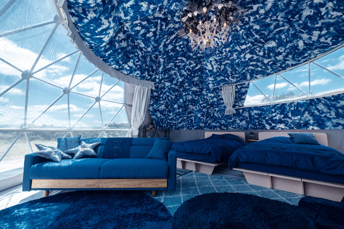 【岡山】デニムをテーマにしたグランピングドームが誕生!昼夜で異なる魅力的な藍色の空間で、ラグジュアリーなひと時を