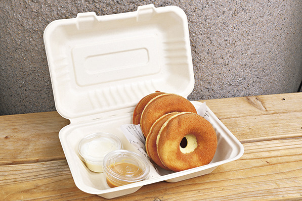 千秋公園のお堀に面して立つ「秋田市文化創造館」の一角にあるテイクアウト専用のカフェ&ショップ。焼きおからドーナツやパフェ、コーヒーを手軽にテイクアウトして、千秋公園で食べるのがおすすめです。ショップでは地元作家の作品や雑貨が揃います。
