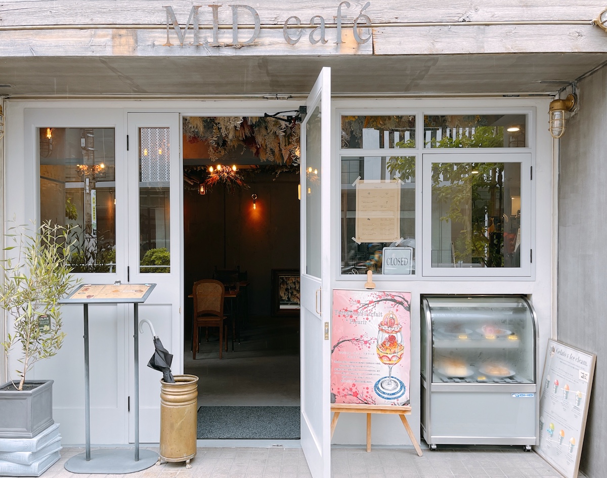 早稲田駅から徒歩2分、学生で賑わう街の一角にヨーロッパのおしゃれなお店を彷彿とさせる雰囲気のカフェがあります。もともと高田馬場にあった「MID cafe」が2023年5月に移転。パフェをはじめとした人気のメニューはそのままに、よりおしゃれな空間を造り上げてリニューアルオープンしました。