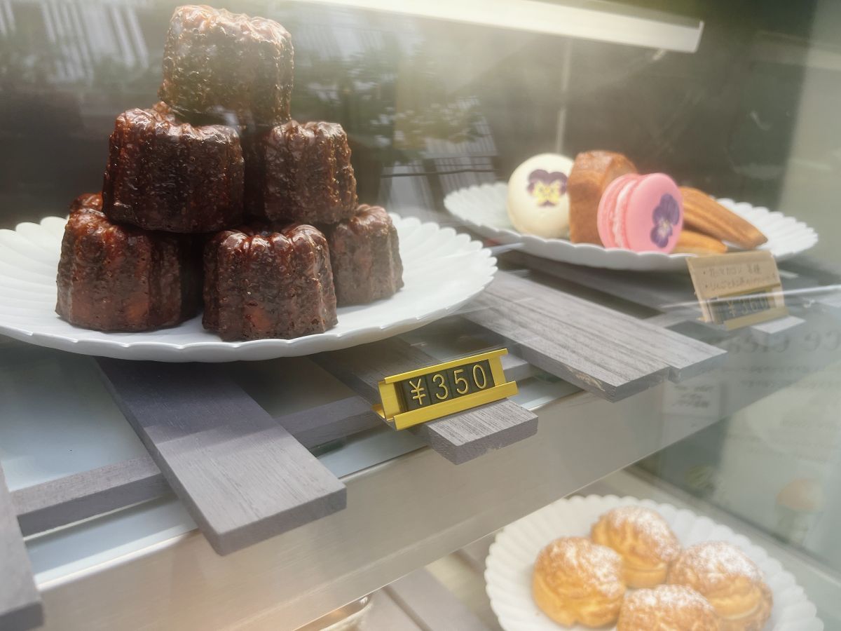 店頭では「カヌレ」350円や「お花のマカロン」360円などすべて店内で作られる焼き菓子も販売中。おうちでのぜいたく時間や手みやげにもぴったりですよ。