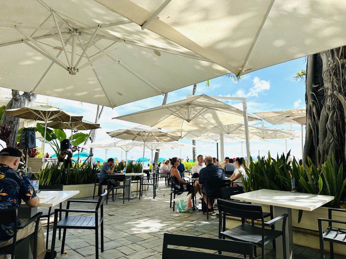 夜には、「ビーチハウス・アット・ザ・モアナ」に名前が変わり、同じ場所で、シーフードやステーキをメインにしたコースメニューを提供しています。