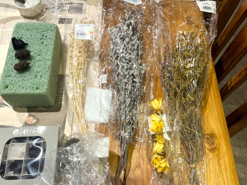 花器が完成したら、いよいよフラワーアレンジメントの準備に突入!