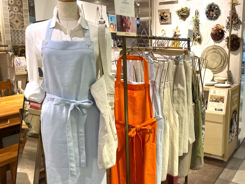 講座参加当日は、店内商品のお買い物が5%オフという特典も!講座中に貸し出しされているリネンの肌触りが気持ちいいエプロンも購入可能です。