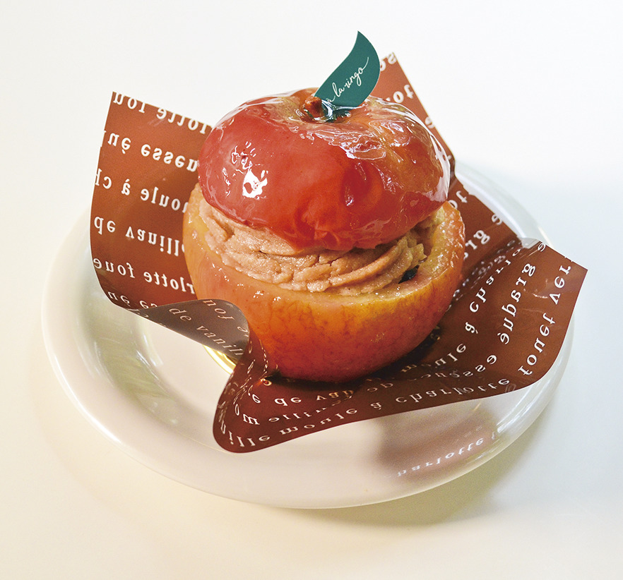 奥入瀬渓流館内にある青森リンゴの専門店「あら、りんご。」カフェでひと息。おみやげや持ち帰り用に焼き菓子のセットも買えます。写真はりんごを丸ごと使った焼きりんごで、果実のよさがぎっしり詰まったさわやかなデザート。