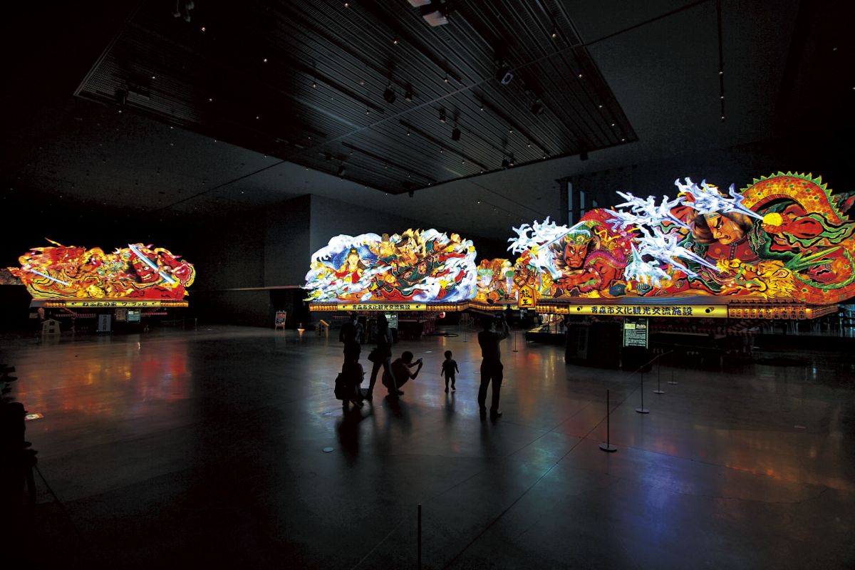 脈々と受け継がれ、大きな祭典に発展した祭りの由来や、変遷を学びながら、本番さながらの迫力も体感できる施設。館内の5mほどの高さのあるねぶたは内側から光に照らされ幻想的。