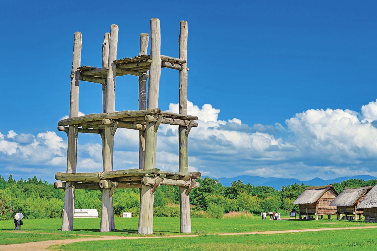 移住生活から定住生活へと変化してきた人類の生活拠点。歴史ロマンあふれるムラの跡地は今も発掘中。写真は今から4000年以上もの前の大型堀立柱建物の復元。