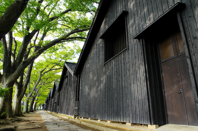 明治26年(1893)に建てられた酒田のシンボル。現在12棟が残っており、1棟は庄内米歴史資料館、2棟はみやげ店やレストランが並ぶ「酒田夢の倶楽」として活用されています。