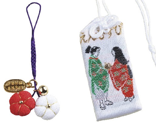 定番の「お守り」700円(左)とちりめん製の「えんむすび御守」500円(右)も。
