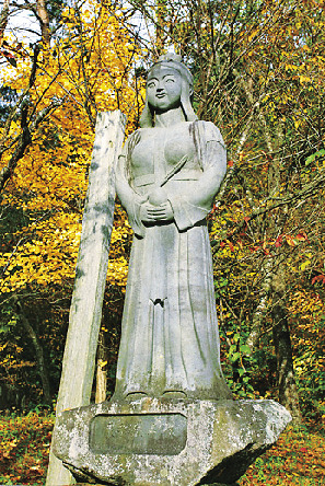 春山地区に立つ、ふっくらとした辰子像。微笑んでいるような表情がかわいらしい。湖畔にある4体の像の中で、最も豊満な辰子像は昭和43 年(1968)に明治百年記念として建立されました。