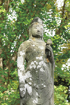 湖畔に点在する辰子像/辰子観音像