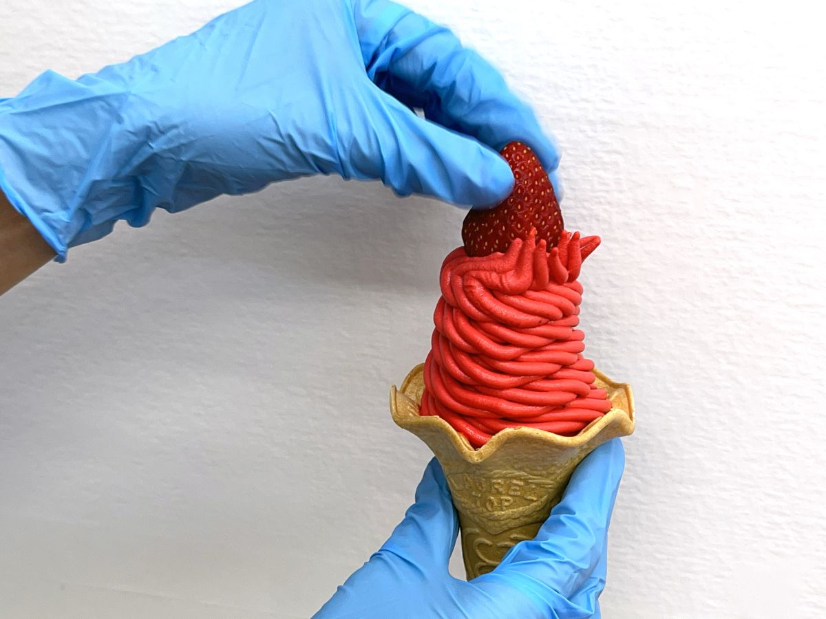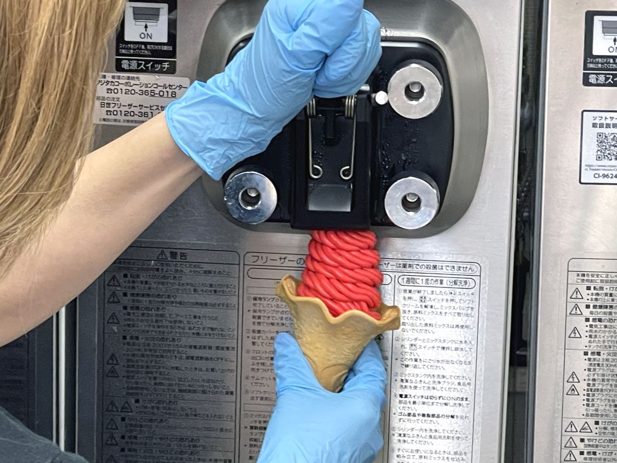 写真を撮って楽しむお客さんも多いので、歪ないちごでがっかりすることがないようにこだわって選んでいるのだそう。360度どこから見てもかわいいソフトクリームを作るための、譲れないこだわりです。