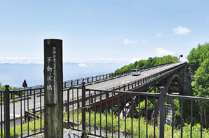 深い渓谷に架かる標高1200mのアーチ橋/不動沢橋