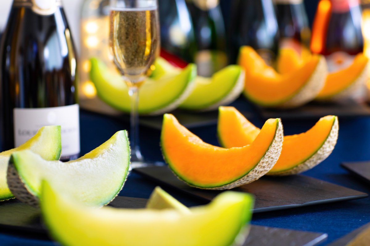 1日の寒暖差が大きいと甘みが増すといわれるメロンは、北海道の名産品の一つ。北海道の気候が栽培に適していて、香り豊かで甘みの強いメロンになるそう。夏に旬を迎えるメロンをそれによく合うシャンパンやトッピングと一緒に楽しめるのが「メロンシャンパンフェス」なのです。