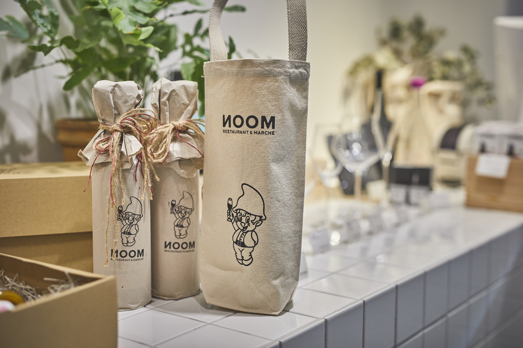 「NOOM」のマスコットをあしらったワインの布袋も発見!かわいいのでプレゼント用のワインを購入の際はぜひ付けてくださいね。(有料550円)。