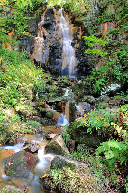 2007年に遊歩道が整備されるまで近隣住民にも存在が認知されていなかった、落差18mほどの穴場的名瀑。駐車場から滝まで徒歩5分ほど。遊歩道をたどれば滝壺まで近寄ることができます。