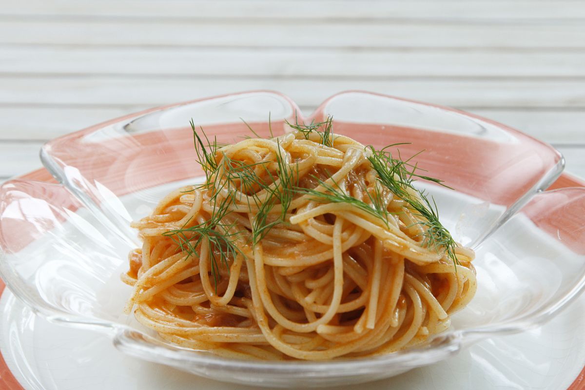 「カニの冷たいパスタソース」は、スパゲッティだけでなく、ショートパスタなどにからめると、また違った味わいに。食べるときにレモンをぎゅっと絞ったり、チリソースなどをトッピングして味変するのもおすすめです。