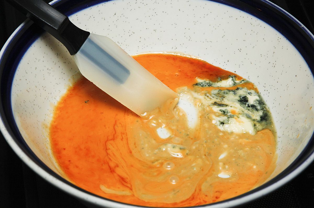 作り方は、耐熱容器にブルーチーズ(小さじ1くらい)と「クリームうにパスタソース」を入れ、電子レンジで600W3〜4秒加熱。秒単位で設定できない場合は、10秒など最短時間で温めてください。ブルーチーズが軟らかくなったら、パスタソースとよく混ぜ合わせます。