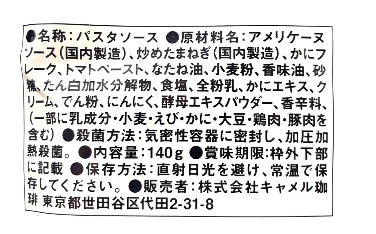 暑い季節には、パスタもひんやりと冷製がいいですね。数あるカルディのパスタソースのなかから、最初にご紹介するのはカルディオリジナルの夏季限定「カニの冷たいパスタソース」140g 340円。