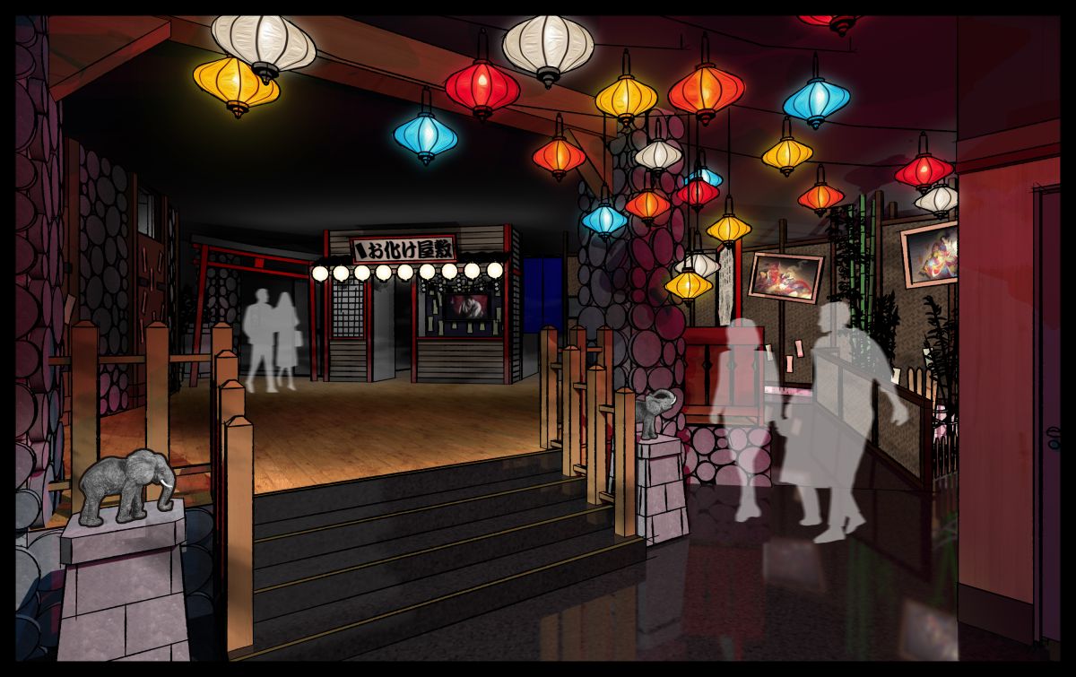 1つ目は、リニューアルしたお化け屋敷「お化け屋敷~江戸の肝試し~(施設2階)」です。歌舞伎や落語、講談などさまざまな形で現代にも伝わる「累ケ淵」「牡丹灯篭」「番町皿屋敷」「四谷怪談」の江戸四大怪談をモチーフにしたお化け屋敷。江戸時代から存在していたという、度胸試しが大好きな江戸の人々を恐怖のどん底に陥れていたお化け屋敷を現代に復活させました。日本人の記憶に刻まれた恐怖の物語を体験することができます。