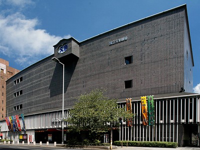 昭和59年(1984)開場の「国立文楽劇場(こくりつぶんらくげきじょう)」は、伝統芸能・人形浄瑠璃文楽上演のための舞台機構を備えた劇場です。文楽は、物語を節にのせて語る太夫と登場人物の心情や情景を奏でる三味線が描き出す義太夫節、三人遣いの人形の細やかでダイナミックな演技が魅力。「国立文楽劇場」では、その文楽の魅力を余すことなく味わえるほか、上方歌舞伎や舞踊、邦楽、大衆芸能などの公演も行われています。