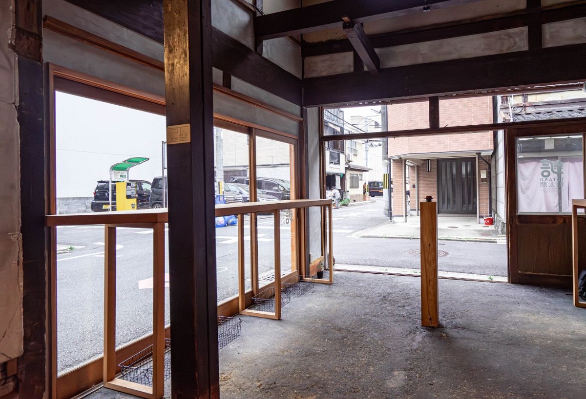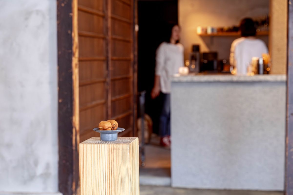 この地で歴史を刻んできた建物に、あえて過度な装飾を加えず最小限だけ手を入れてリニューアル。ミニマルな美しさの中に、瓦屋根やモルタルのひび割れ、トタンのサビなど経年を感じさせるアクセントが生き、なんとも趣のある外観です。