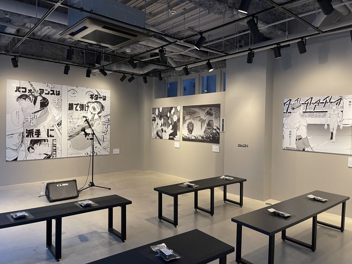 カフェにはガラス張りの広々としたギャラリースペースが併設されています。ここでは、集英社のマンガアプリ「少年ジャンプ+」で連載中のマンガの中から、“まだ知られてないけどアツい”注目のマンガをピックアプして展示。大判で展示された作品からは迫力と熱量を感じます。この空間だけでなく、カフェスペースにも展示されているので必見です。