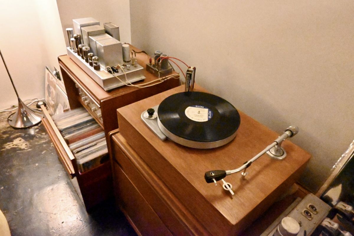 店内の照明は明るさが程よく抑えられ、ところどころにお店のオーナーがDIYした木製家具が置かれた温かみのある空間。ターンテーブルなども置いてあって、どこかレトロな雰囲気も漂います。