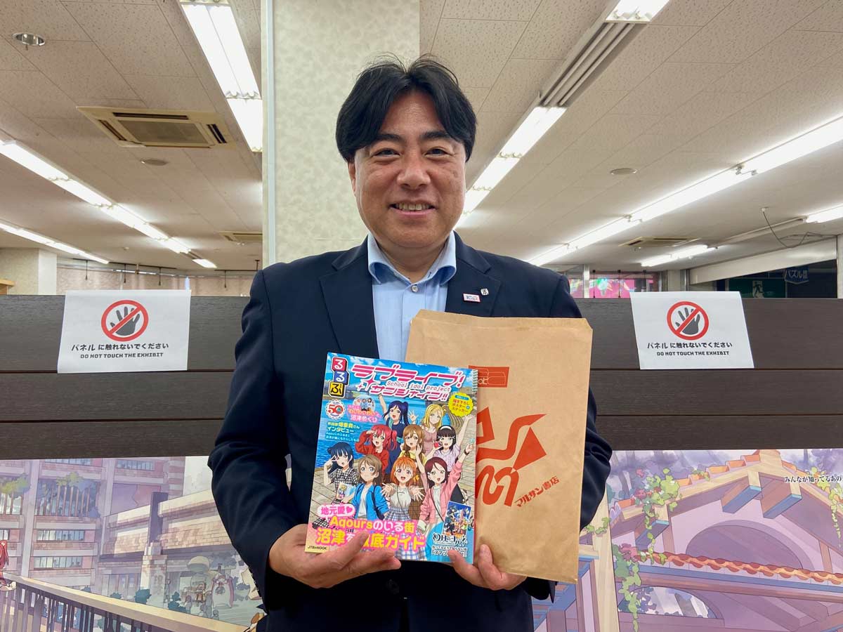 初日には沼津市の頼重市長にもお越しいただき、『るるぶラブライブ!サンシャイン!!』をご購入いただきました。