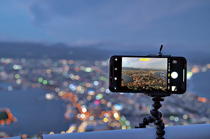 ・スマホの設定を夜景モードやナイトモードに。機種によっては明るくなる場合があり、露出を下げるなどの設定が必要なことも。フラッシュオフと撮影時の固定も忘れずに。