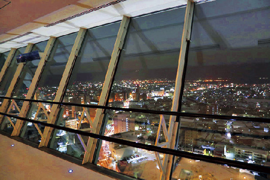 地上80m以上の高さから市街と函館山の眺望を楽しめる。営業時間の長い秋~春にかけてのみ見られる絶景。