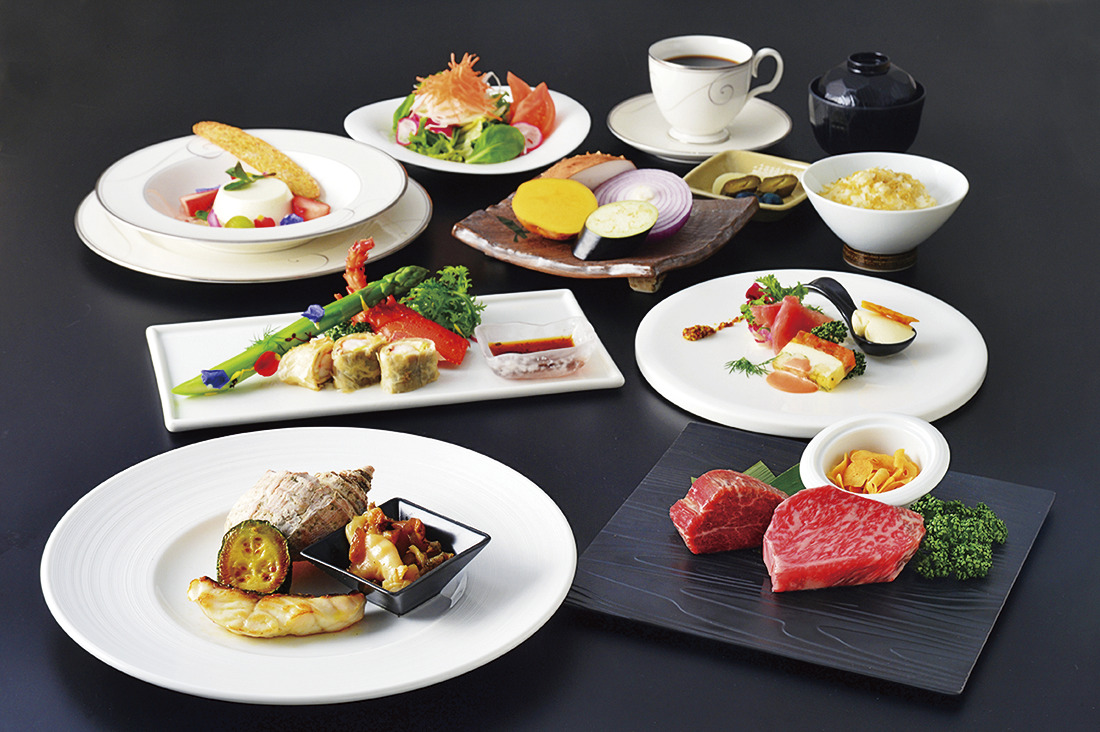 函館近郊で収穫された旬の野菜や魚介、北海道産和牛を贅沢に味わえます。